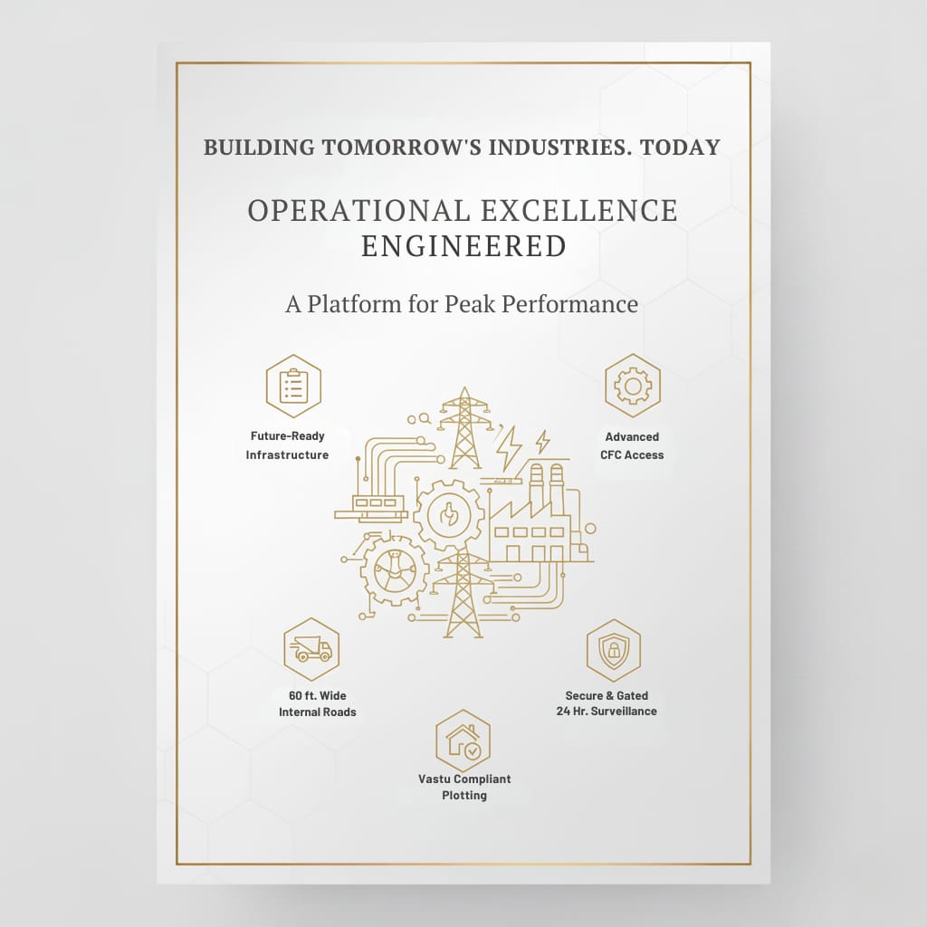 Modern infrastructure with wide roads, landscaped green spaces, reliable utilities, and digital connectivity—designed for tomorrow’s business needs and sustainable growth